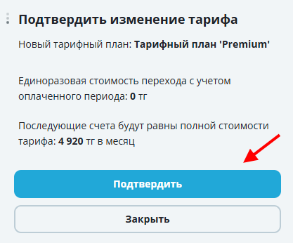 6. Подтвердите изменение тарифа